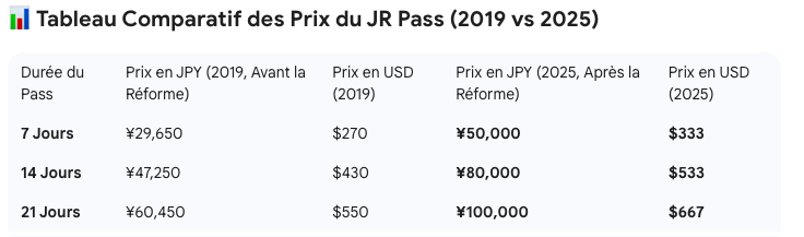 1.La Réforme du JR Pass et l’Impact sur les Coûts de Voyage