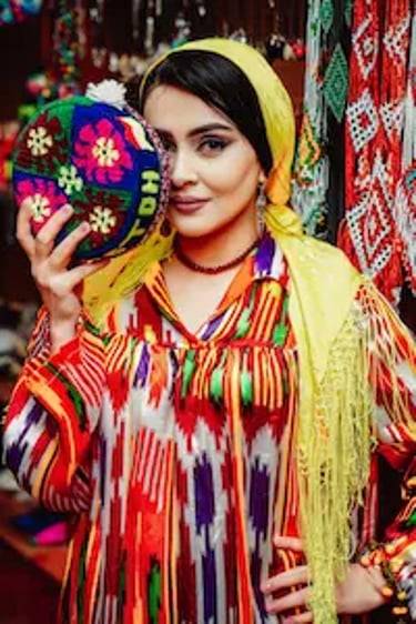 Made from cotton or silk and often lined with wool for winter, the chapan features geometric patterns and bright colors that reflect Central Asia’s enduring textile artistry.
